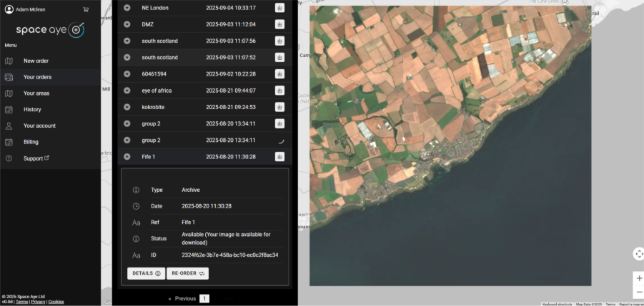 - Re – order – start a new order using the same Area of Interest as this imagery